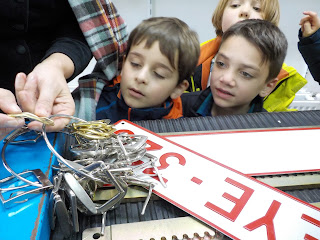 Op vrijdag 16 maart zijn we naar de schoenmaker in Mariakerke geweest. De schoenmaker zelf was ziek, maar de vrouw van de schoenmaker en 2 zussen van haar gaven ons een rondleiding. We leerden over : verschillende soorten zolen, leder, hoe een schoen gerepareerd wordt, hoe een sleutel geslepen wordt, wat een schoenmaker nog allemaal maakt (nummerplaten drukken, riemen en tassen repareren...).We kregen uitleg over de machines die in het atelier stonden. We mochten zelf met de slijpmachine een sleutel slijpen. Enkele kinderen vonden dit heel cool. Sommige vertelden nadien dat ze graag later schoenmaker willen worden. Dat belooft !